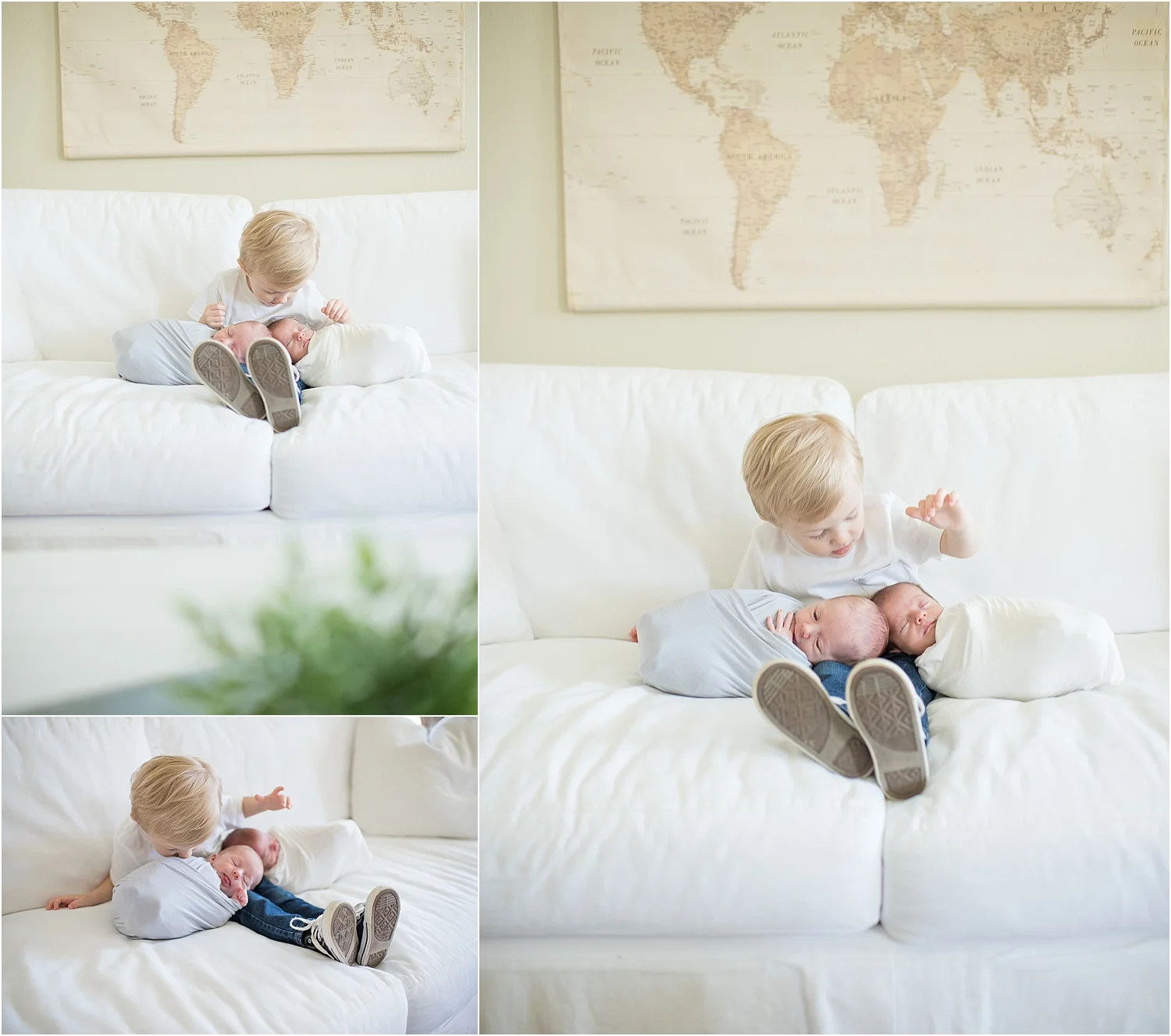 What a pleasure it was to meet this sweet family and hear how their family of three became five! The love they have for all three of their children is undeniable. Big brother Beau is stepping right into his new role. My heart practically melted as he sang "twinkle twinkle little star" to them while I posed them on the bed together. And get a look at this crib that dad himself built, AMAZING!