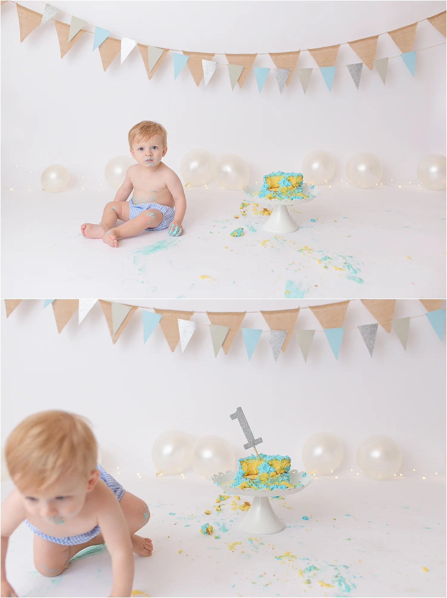 Gavin visited me in the studio Saturday to celebrate turning the big ONE. Crazy to believe that just one year ago I was photographing his newborn session! My how he has grown! He arrived to the studio asleep but quickly woke up and jumped into his session, cake and all! What a pleasure he was to celebrate. And those eyes of his <3